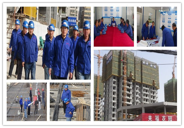 由于一、二期工程全部開(kāi)工,單位工程層數(shù)不同,進(jìn)度不一,諸多工序穿插施工,十余部塔吊、升降機(jī)上下穿梭,近五百名施工人員遍布工地各個(gè)角落,整個(gè)工地呈現(xiàn)一片繁忙景象。
