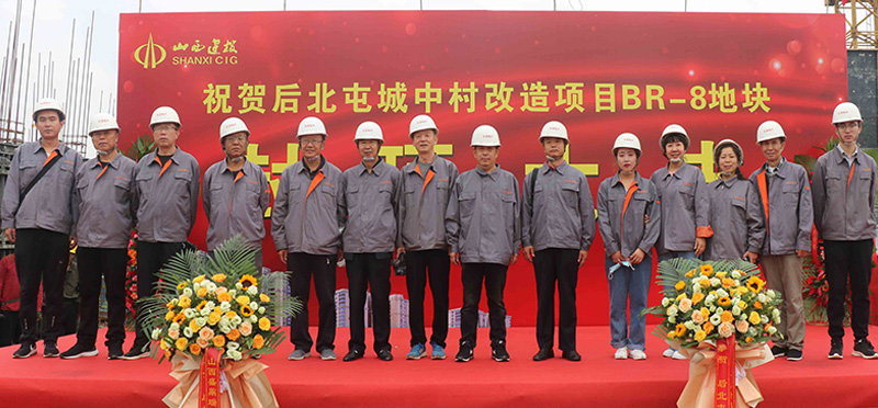 2021年9月4日后北屯城中村改造BR-8地塊住宅樓封頂。隨著禮炮鳴響,后北屯社區(qū)書記、天地衡監(jiān)理項(xiàng)目總監(jiān),施工單位經(jīng)理依次發(fā)言祝賀。在相關(guān)參與建設(shè)的單位見(jiàn)證下,由山西二建集團(tuán)公司總包承建的后北屯城中村改造BR-8地塊回遷樓最后一方混凝土澆筑完成。