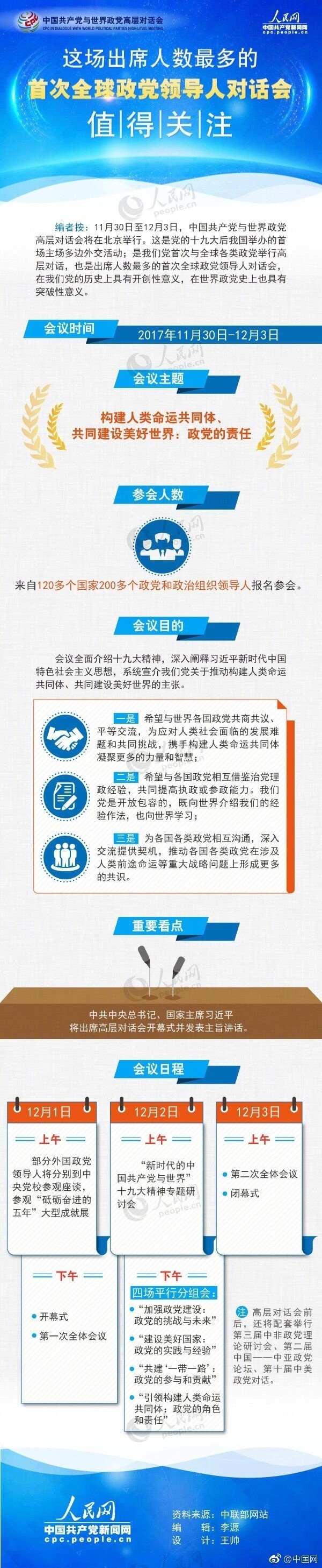 中國共產(chǎn)黨與世界政黨高層對話會(huì)將于11月30日至12月3日在北京舉行。中共中央總書記、國家主席習(xí)近平將出席高層對話會(huì)開幕式并發(fā)表主旨講話。來自120多個(gè)國家、200多個(gè)政黨和政黨組織的領(lǐng)導(dǎo)人將齊聚北京、共商大計(jì)。這樣的大場面,在世界政黨史上可謂罕見。
