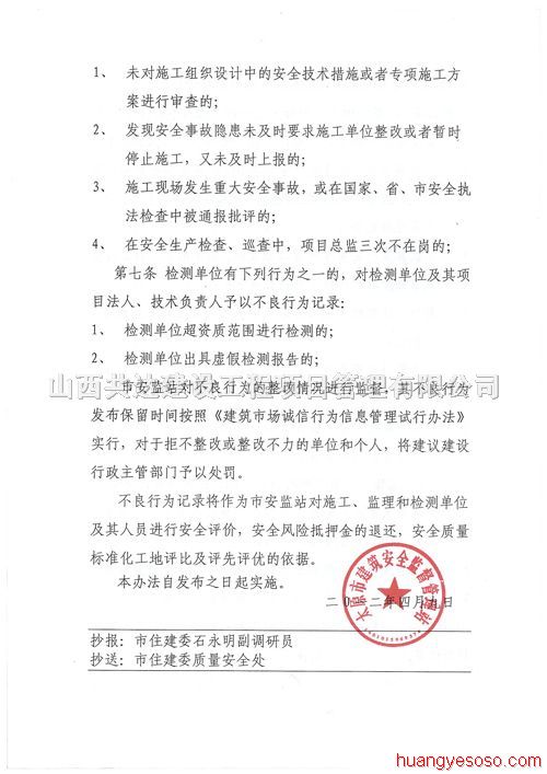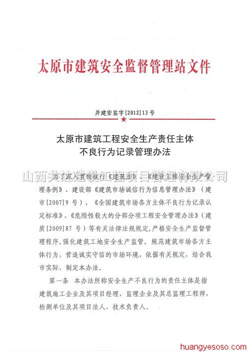 太原市安監(jiān)站《太原市建筑工程安全生產(chǎn)責(zé)任主體不良行為記錄管理辦法》