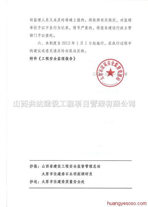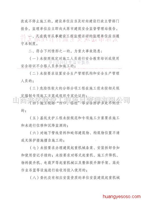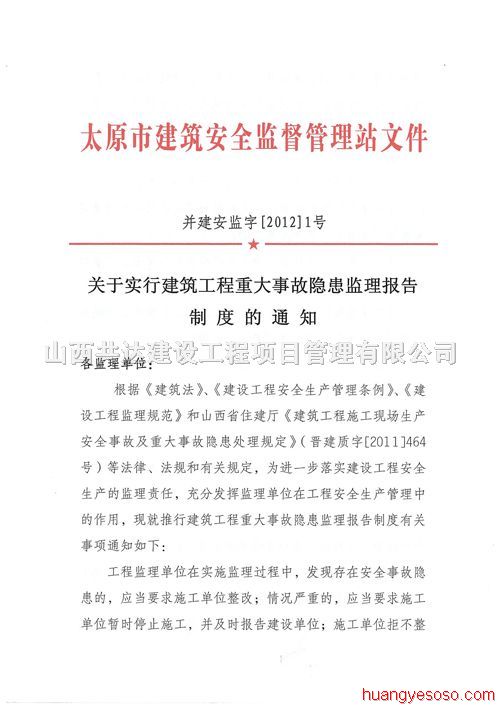 太原市安監(jiān)站《關(guān)于實行建筑工程重大事故隱患監(jiān)理報告制度的通知》