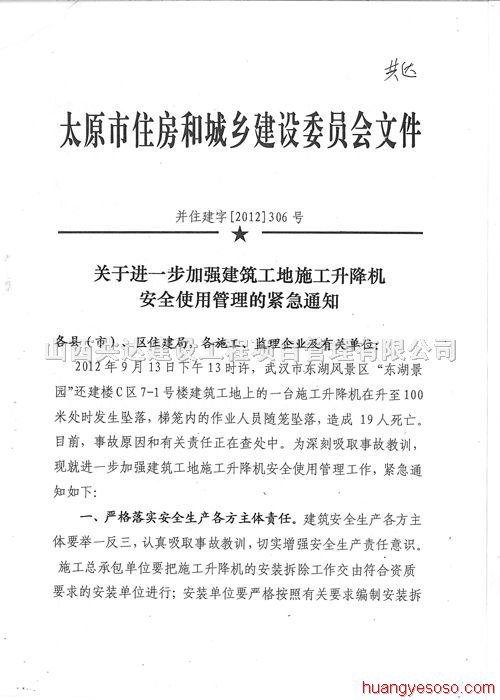 太原市住建委《關(guān)于進(jìn)一步加強(qiáng)建筑工地施工升降機(jī)安全使用管理的緊急通知》
