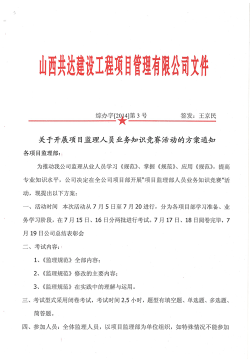 關于開展項目監(jiān)理人員業(yè)務知識競賽活動的方案通知