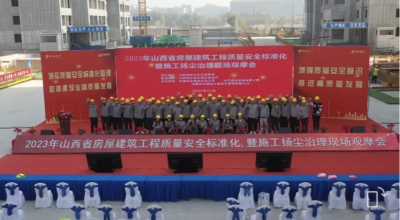 為落實(shí)山西省《工程質(zhì)量管理手冊》、《工程安全管理手冊》,加大工程質(zhì)量安全標(biāo)準(zhǔn)化宣教工作力度,落實(shí)秋冬季建筑工地?fù)P塵治理措施,11月1日上午,以“落實(shí)質(zhì)量安全標(biāo)準(zhǔn)化管理、助推建筑業(yè)高質(zhì)量發(fā)展”為主題的2023年山西省房屋建筑工程質(zhì)量安全標(biāo)準(zhǔn)化暨施工揚(yáng)塵治理現(xiàn)場觀摩會在綜改區(qū)楊莊3#地塊項(xiàng)目成功召開。