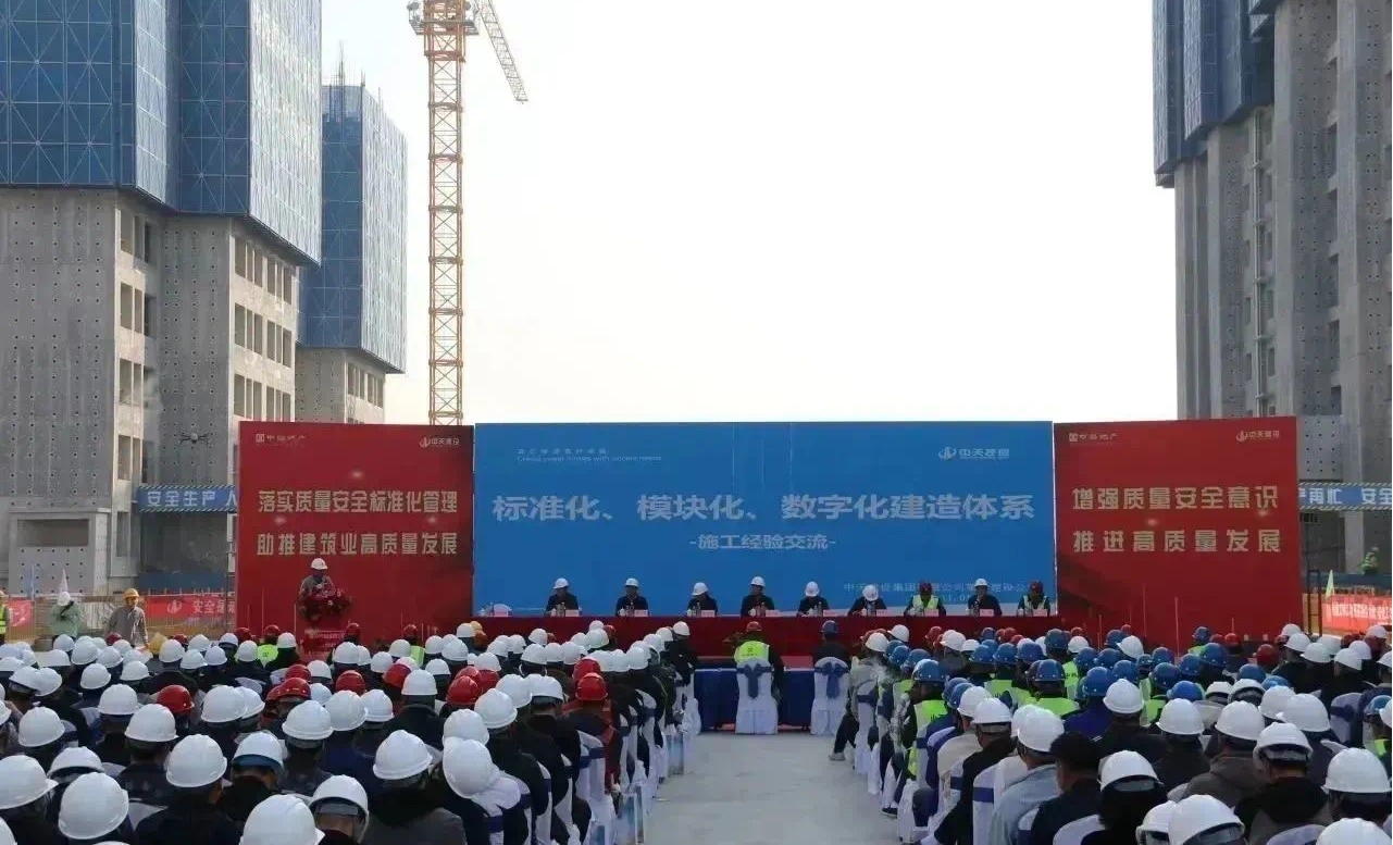 會議伊始,與會人員觀看了項(xiàng)目標(biāo)準(zhǔn)化管理視頻匯報(bào),中天十建副總工程師程炳勇對中天標(biāo)準(zhǔn)化管理、模塊化建造作了經(jīng)驗(yàn)分享。