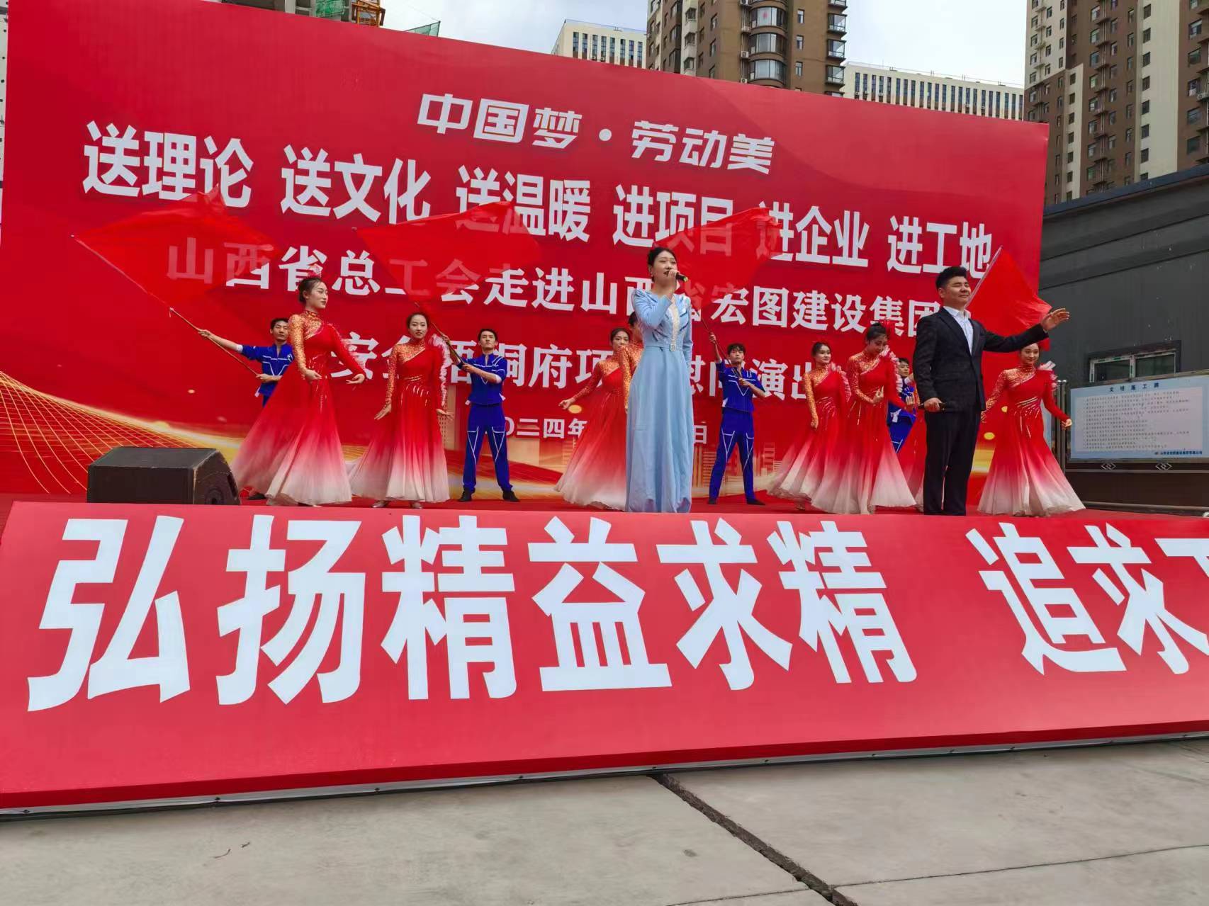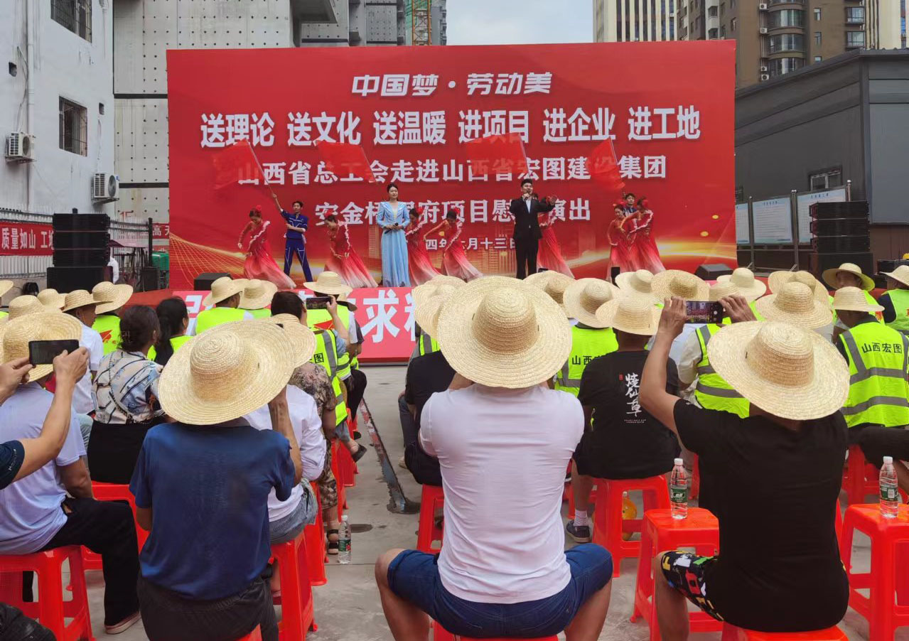 6月13日下午,為深入學(xué)習(xí)宣傳貫徹黨的二十大精神和中國工會十八大精神,大力弘揚勞模精神、勞動精神、工匠精神,豐富廣大職工的的文體生活,持續(xù)推動職工文化建設(shè)。山西省總工會“送理論、送文化、送溫暖”“進項目、進企業(yè)、進工地”慰問演出團走進安金梧桐府項目1號樓工地,開展了中國夢-勞動美-勵志慰問演出,為勞務(wù)人員和一線工作人員帶來了一場精彩紛呈的文化盛宴,現(xiàn)場氣氛熱烈和諧,催人奮進。省總工會宣教部郭勵新主任對安金梧桐府項目部參建人員建設(shè)方、監(jiān)理方、施工方一線職工朋友們,表示了親切的問候。并對建設(shè)者們在這樣高溫的環(huán)境下,不畏酷暑,任勞任怨,堅守城市建設(shè),表示了崇高的敬意。